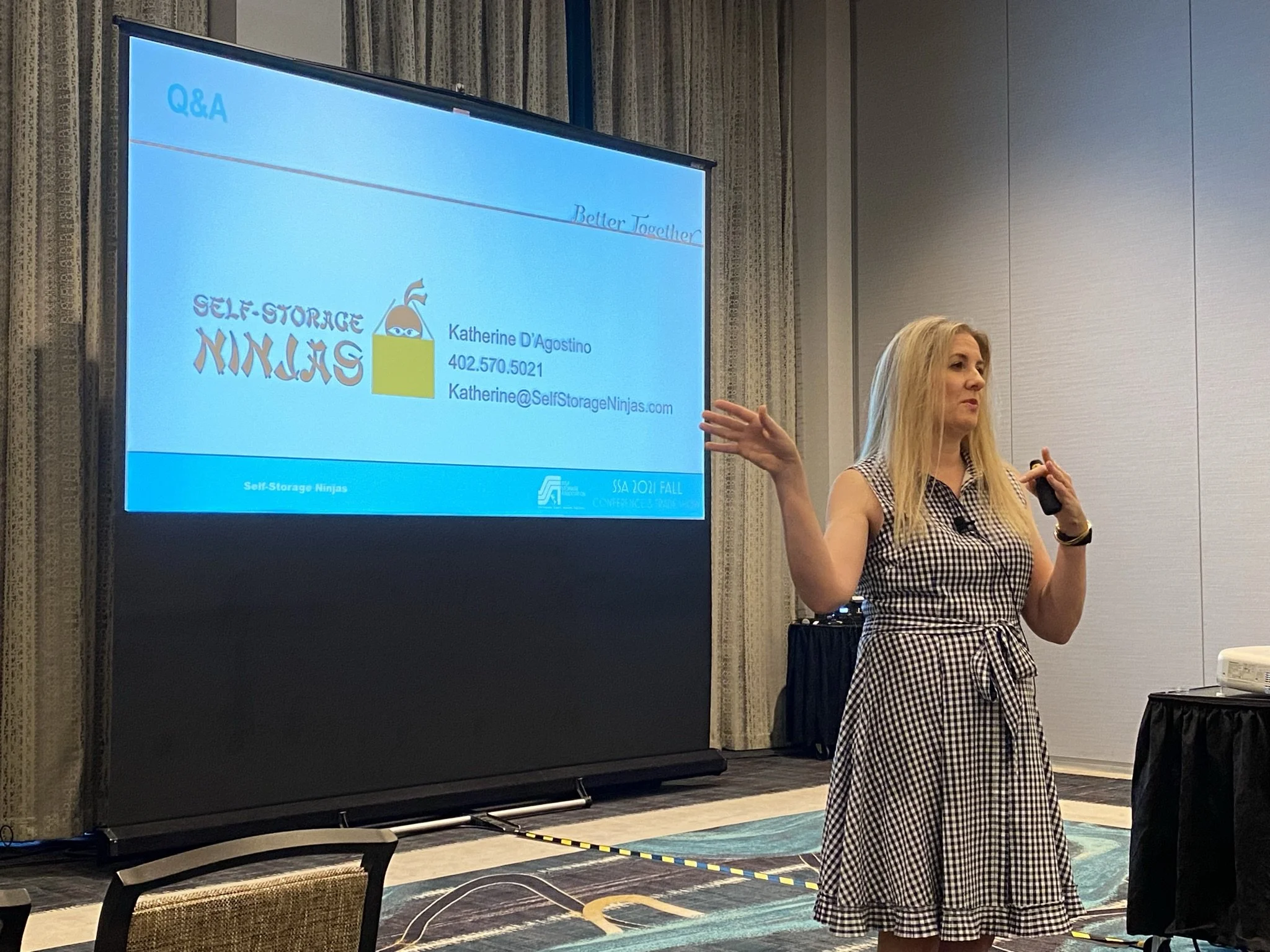 Sensei Katherine speaking at the national Self Storage Association convention, Las Vegas, 2021